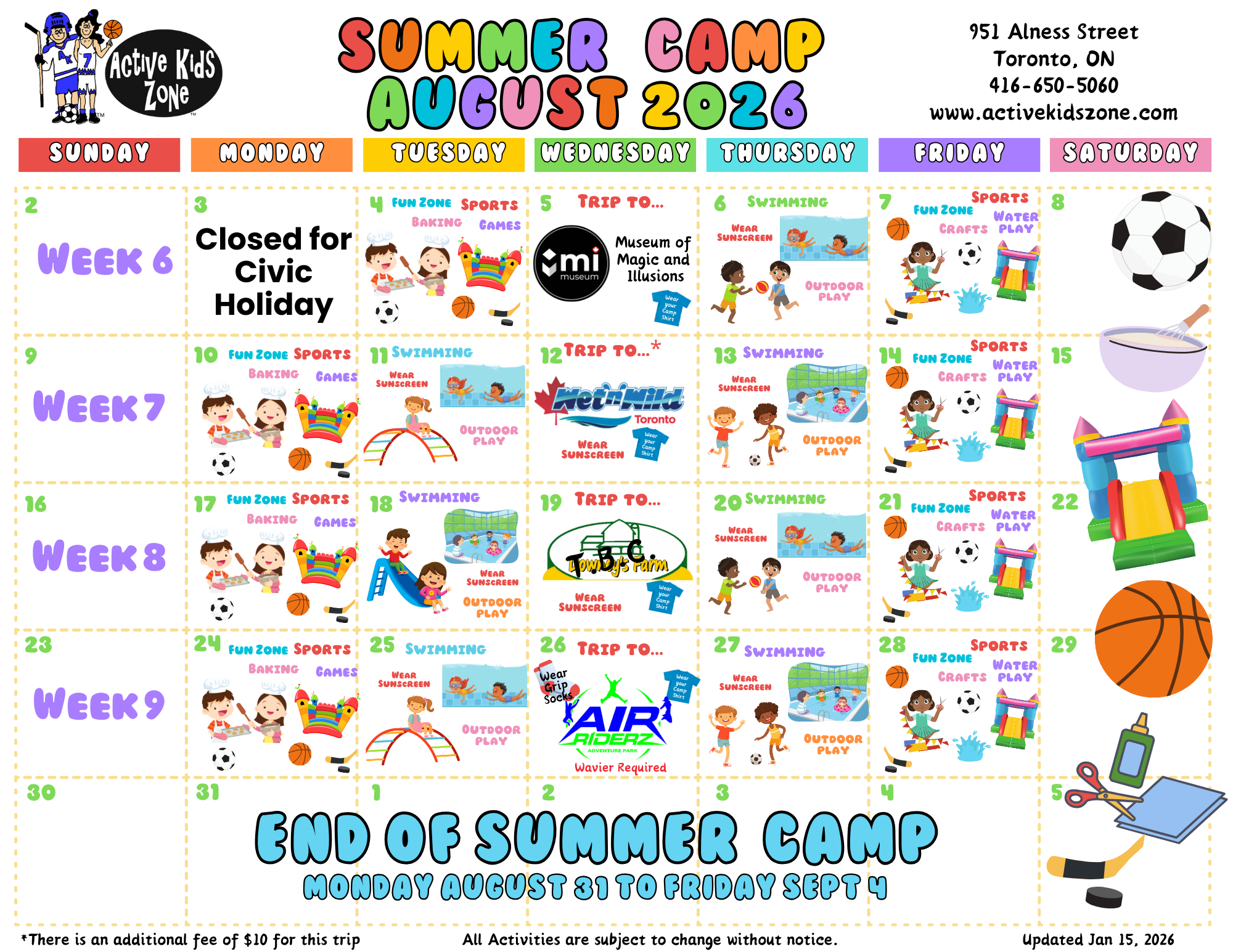 Every week at Active Kids Zone Summer Camp is an adventure! Campers get to explore exciting new destinations with a different field trip each week. From thrilling amusement parks to outdoor adventures and new experiences, every trip is packed with fun, discovery, and unforgettable memories.
